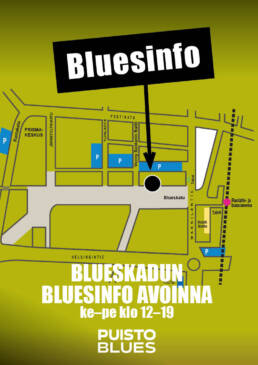 Bluesinfo Blueskadulla keskiviikosta 2.7.– perjantaihin 4.7.2025 klo 12.00-19.00.