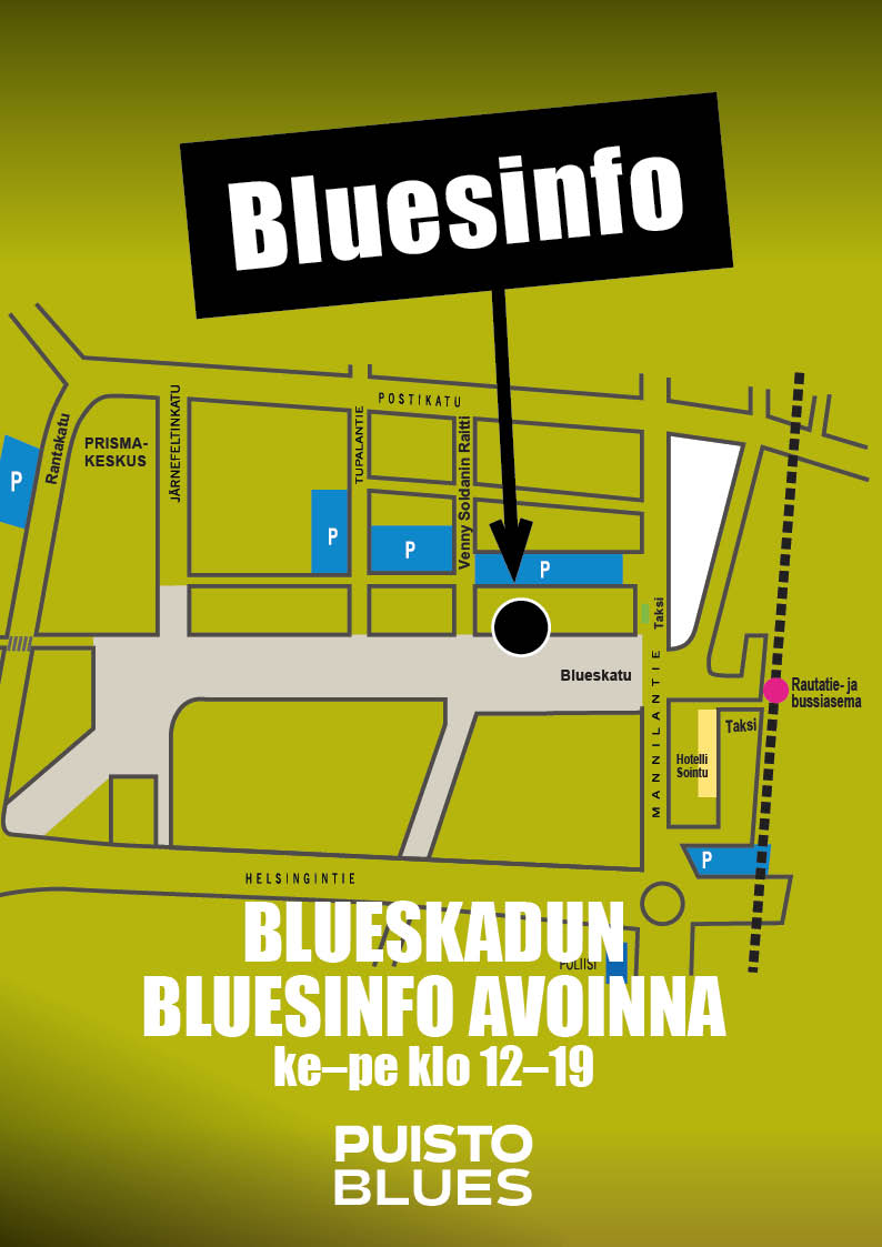 Bluesinfo auttaa ja palvelee kaikissa festivaaliin liittyvissä asioissa. Mikäli et löydä näiltä sivuilta vastauksia kysymyksiisi, ota yhteyttä sähköpostitse: info@puistoblues.fi.